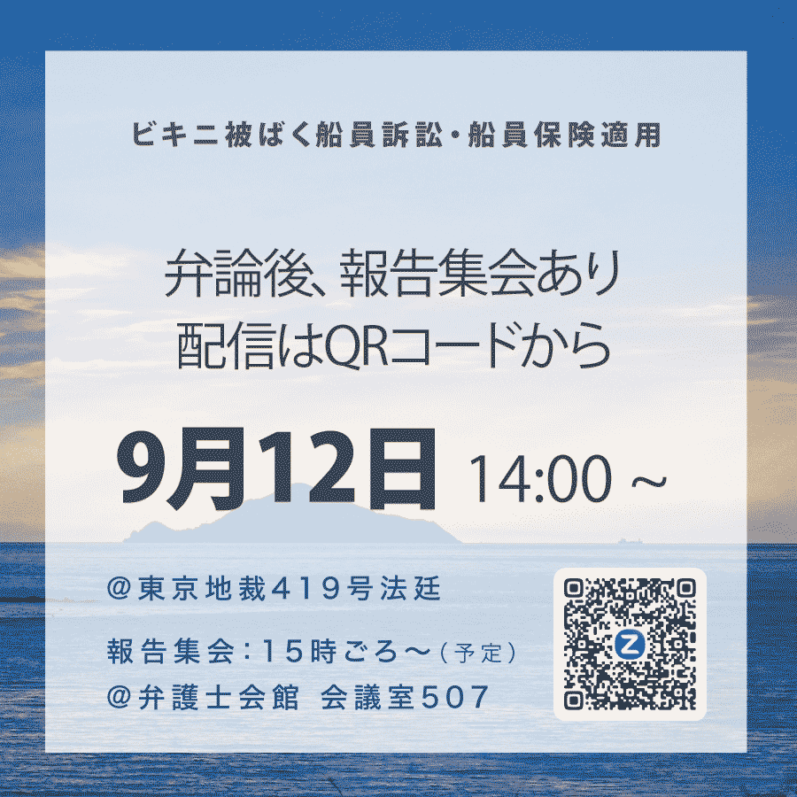 - 7/14 ビキニ船員訴訟原告団長・下本節子さんより、