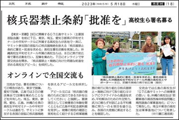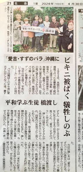 - 3/16 赤旗記事に静岡「エバーグリーン藤枝」の結成20年で第5福竜丸展示館・市田真理さんの講演と高校生たちのトークセッションの様子「ビキニ水爆―私たちが風化させない」が掲載されました。