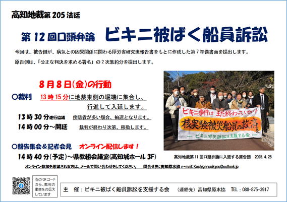 - 8/8 高知地裁第 205 法廷 第 12 回口頭弁論 ビキニ被ばく船員訴訟