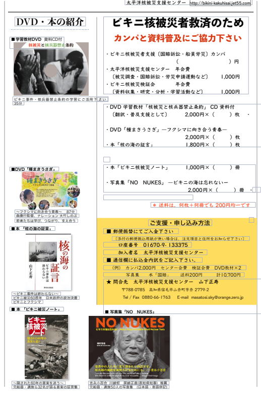 太平洋核被災支援センター関係の各種書籍です。ご注文は、TEL,FAX,メールでお知らせ下さい。