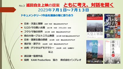 - 3/15 渡辺謙一さんより巡回自主上映の提案です。