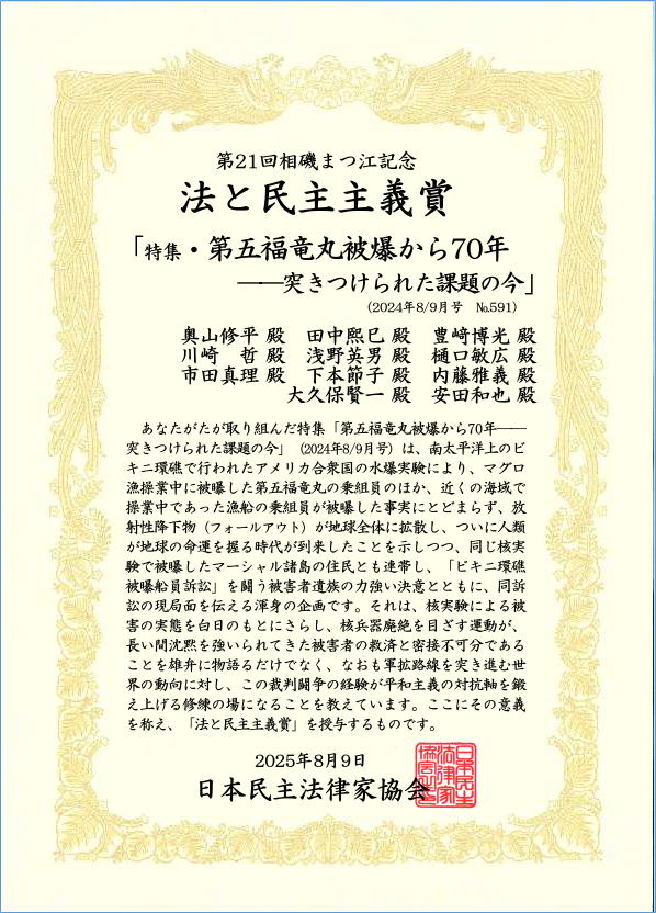 - 2/25 ビキニ核実験被災者の訴訟についての記事(山根和代執筆)が、国際NGOの「核の真実プロジェクト」のお便り(このメールの下の方に赤字で)に紹介されました。海外で訴訟についてほとんど知られていないので、記事を書くように依頼されました。また2月28日に、