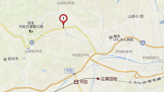 土讃線・くろしお鉄道平田駅を出て、芳奈口から宿毛総合運動公園方面へ徒歩約25分。